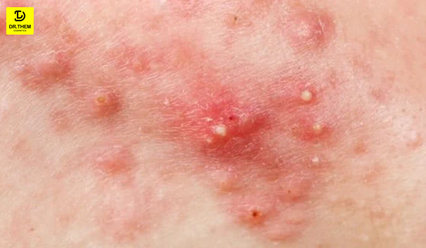 - Biểu hiện: Các nốt sần đỏ có đầu chứa mủ màu trắng hoặc vàng.