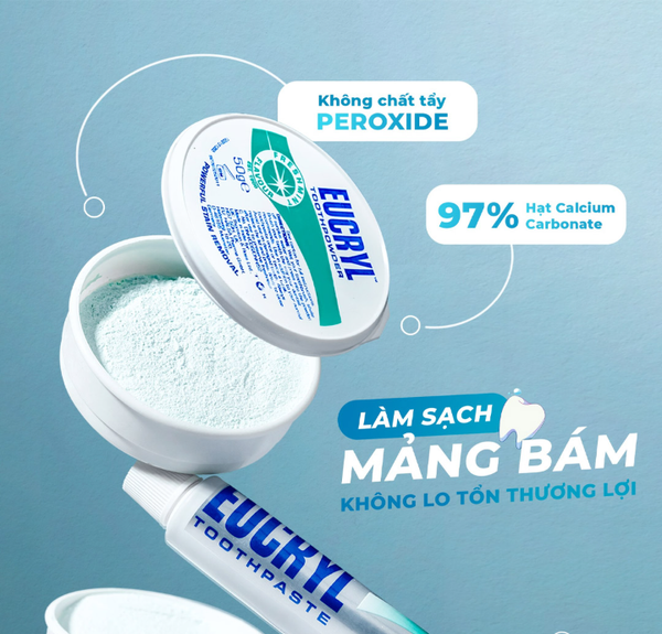 + Không dùng bột làm trắng răng EUCRYL cho trẻ em.