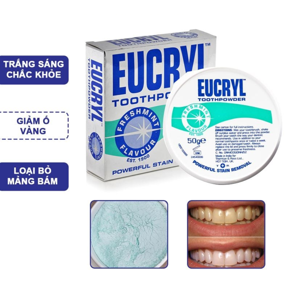 - Tên sản phẩm: Bột Làm Trắng Răng Eucryl Tooth Powder Freshmint Hương Bạc Hà