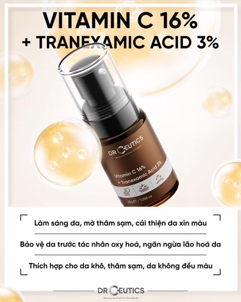 - Tên sản phẩm: Serum DrCeutics Vitamin C 16% Và Tranexamic Acid 3% Ngăn Ngừa Lão Hóa, Làm Sáng Da