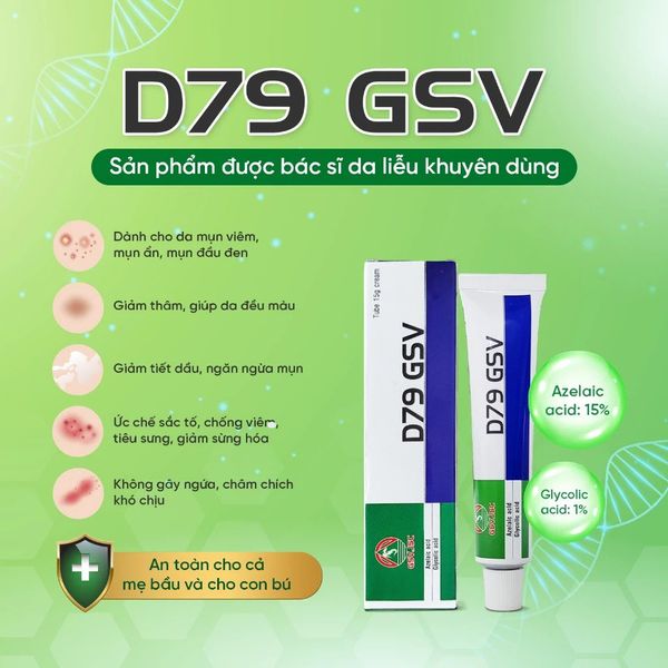 - Tên sản phẩm: Gel Dưỡng D79 GSV (Azelaic) Giảm Mụn Trứng Cá, Mụn Lưng, Dày Sừng Nang Lông