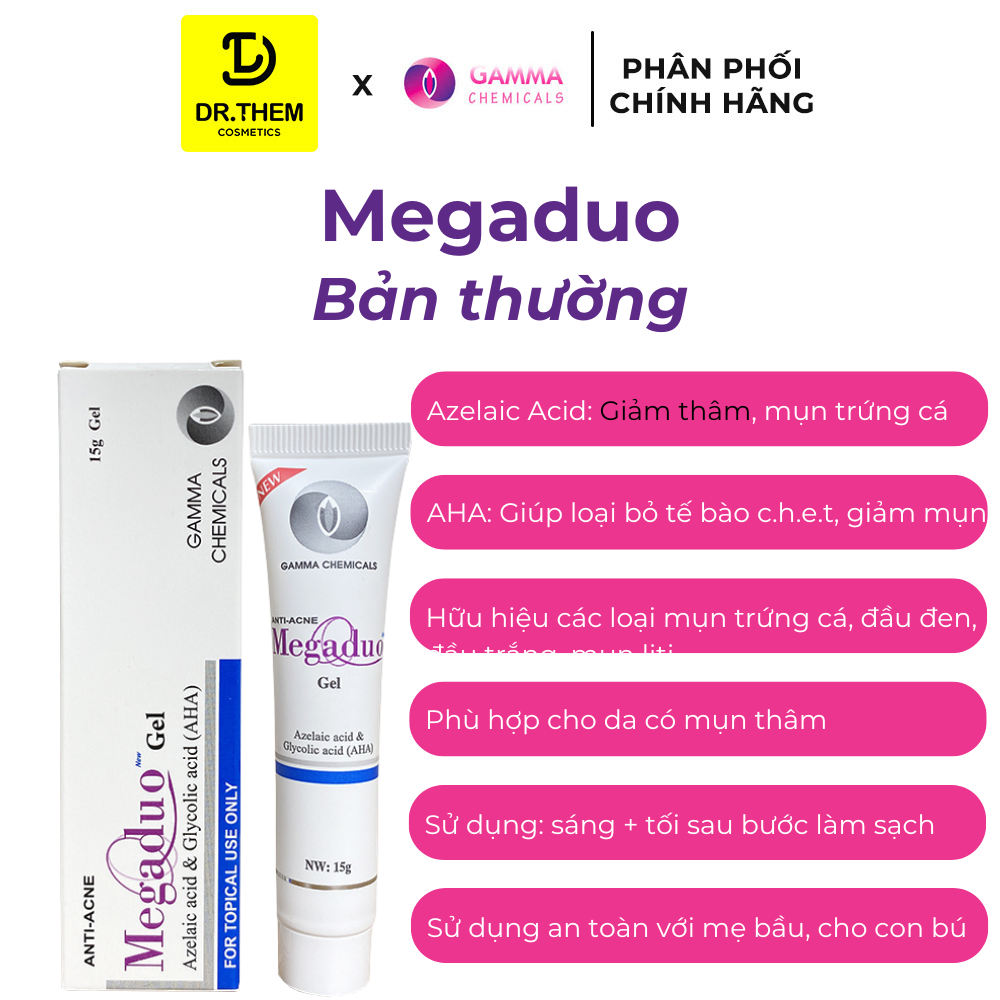 - Tên sản phẩm: Gel Dưỡng Megaduo Gel (Azelaic acid + AHA) Giảm Mụn, Mờ Thâm 15g - Bản Thường