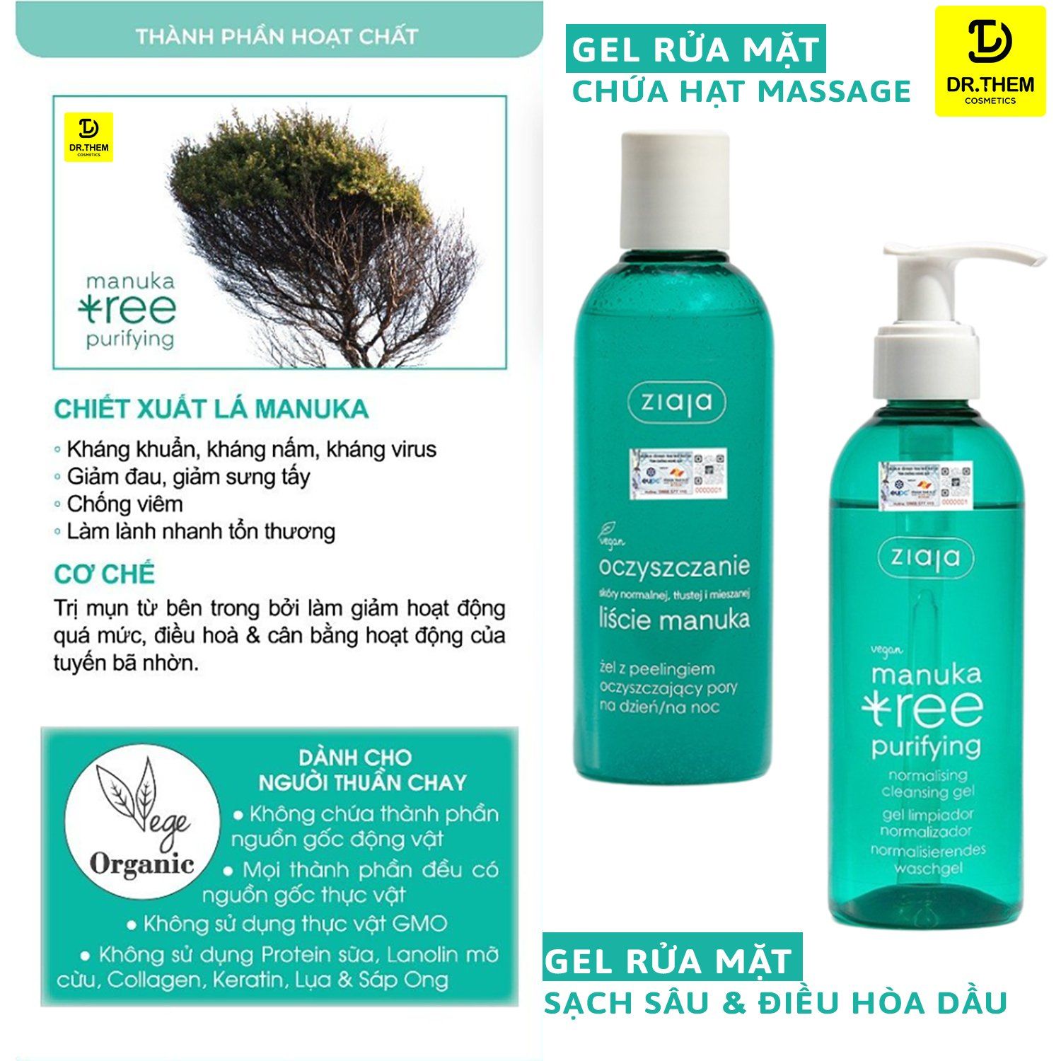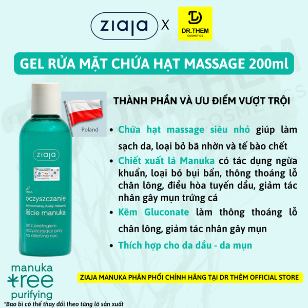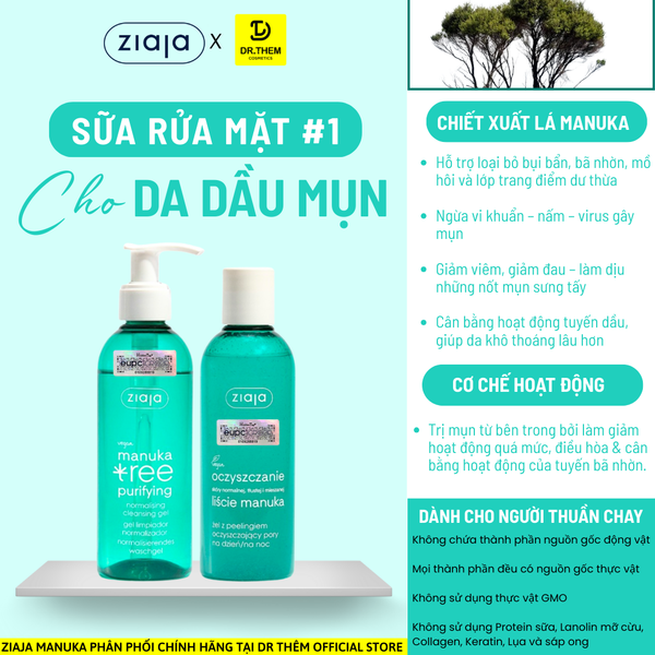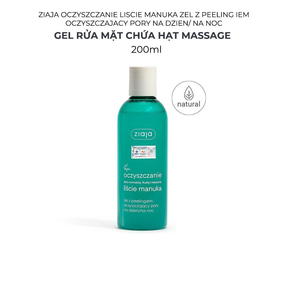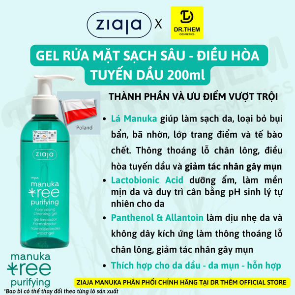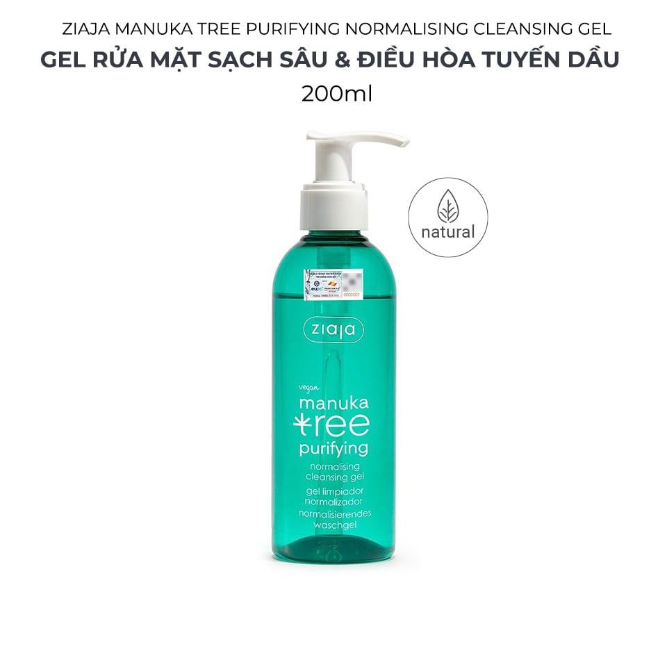 - Tên sản phẩm: Gel Rửa Mặt Sạch Sâu, Điều Hòa Tuyến Bã Nhờn Ziaja Manuka Tree Purifying Normalising Cleansing Gel