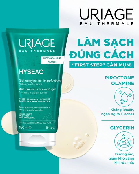 Gel Rửa Mặt Uriage Hyséac Gel Nettoyant Cleansing Gel Cho Da Dầu Mụn, Hỗn Hợp 150ml