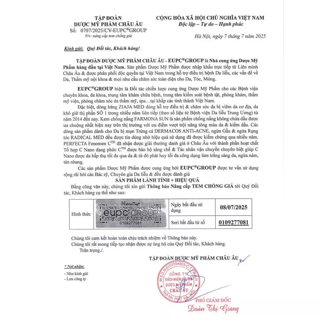 - Thông tin/ cảnh báo: Sản phẩm chỉ dùng ngoài da. Tránh để tiếp xúc trực tiếp với mắt, vùng da quanh mắt. Trường hợp tiếp xúc với mắt, rửa mắt ngay bằng nước sạch nhiều lần. Để xa tầm tay trẻ em.