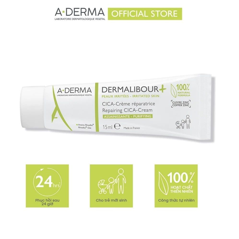 + Kem dưỡng A-Derma Dermalibour+ Repairing CICA-Cream phù hợp cho làn da đang gặp các vấn đề kích ứng như chàm, viêm da tiếp xúc, viêm da bàn tay, viêm da quanh miệng, hăm tã, viêm môi. Sản phẩm có thể sử dụng cho mặt, cơ thể ở cả trẻ sơ sinh, trẻ em, người lớn. Đặc biệt phù hợp cho da khô, rát.