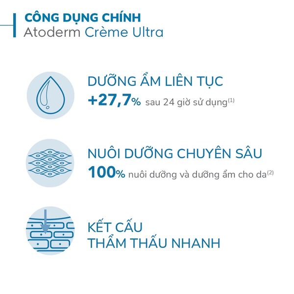+ Tác dụng dưỡng ẩm của Atoderm Crème Ultra sẽ đạt hiệu quả tối ưu khi bạn thoa kem lúc vừa mới tắm hay rửa mặt xong.