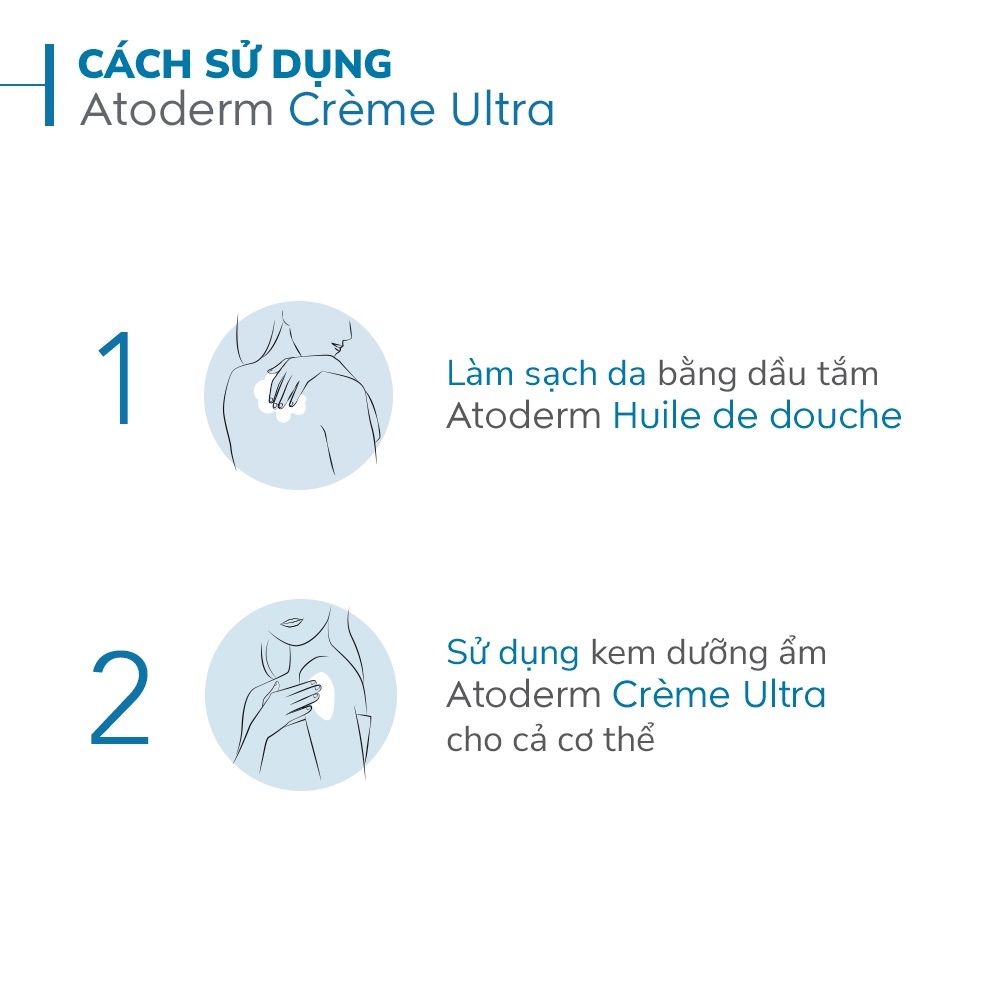 + Thoa Atoderm Crème Ultra sau khi làm sạch da và để khô tự nhiên