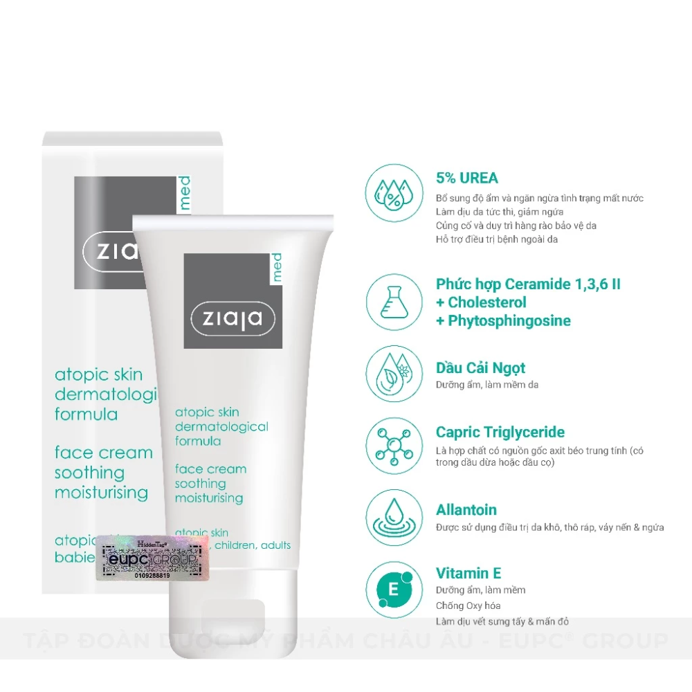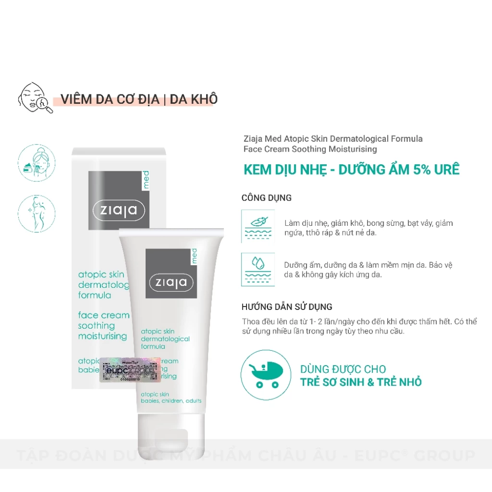 - Tên sản phẩm: Kem Dưỡng Ziaja Med 5% Ure Dịu Nhẹ Dưỡng Ẩm 50ml, Atopic Skin Dermatological Formula Atopy Urê