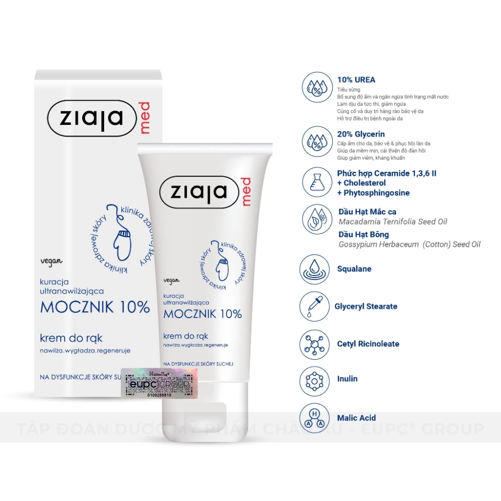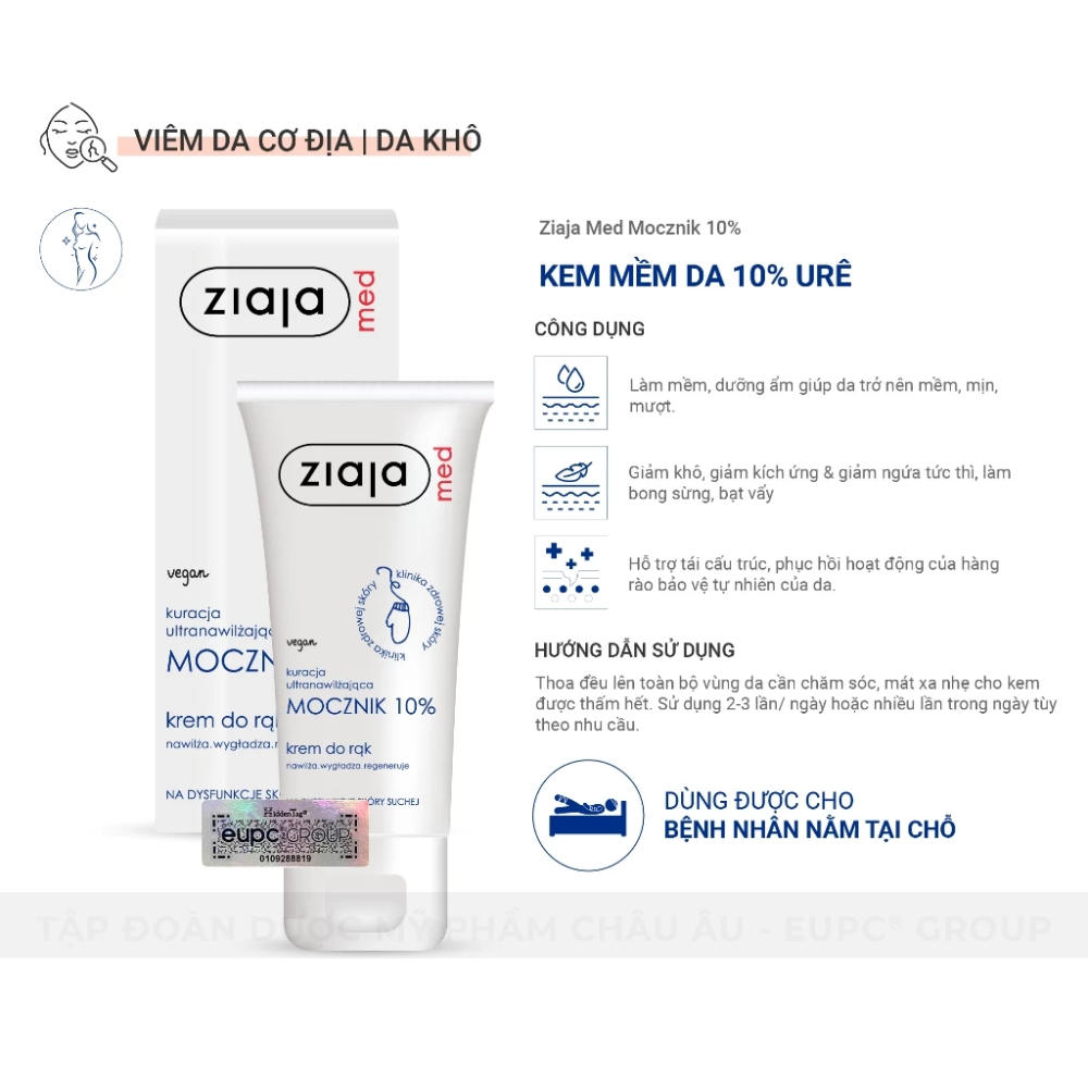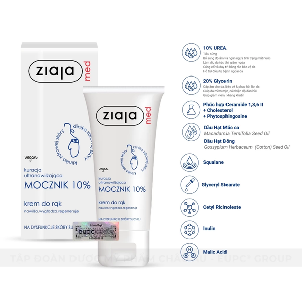 - Tên sản phẩm: Kem Dưỡng Mềm Da 10% Urê Ziaja Med Mocznik Làm Mềm, Giảm Khô, Giảm Kích Ứng
