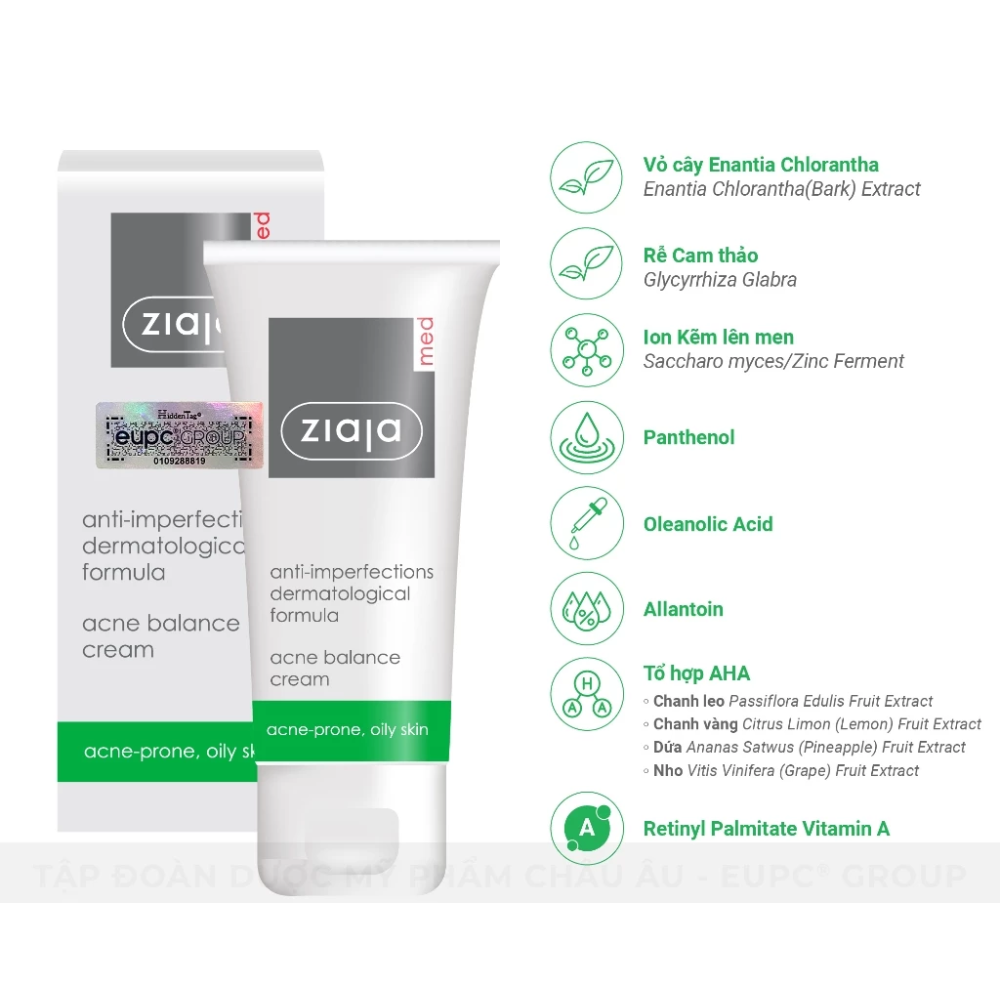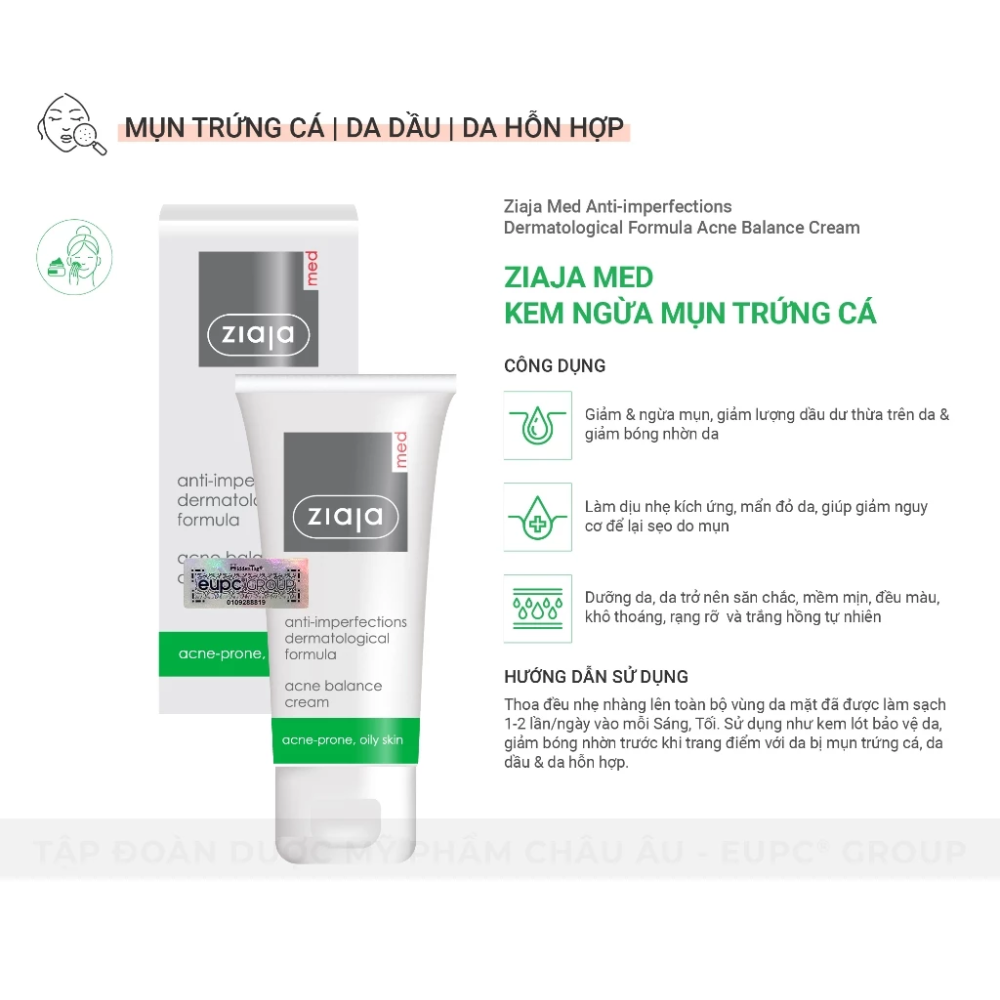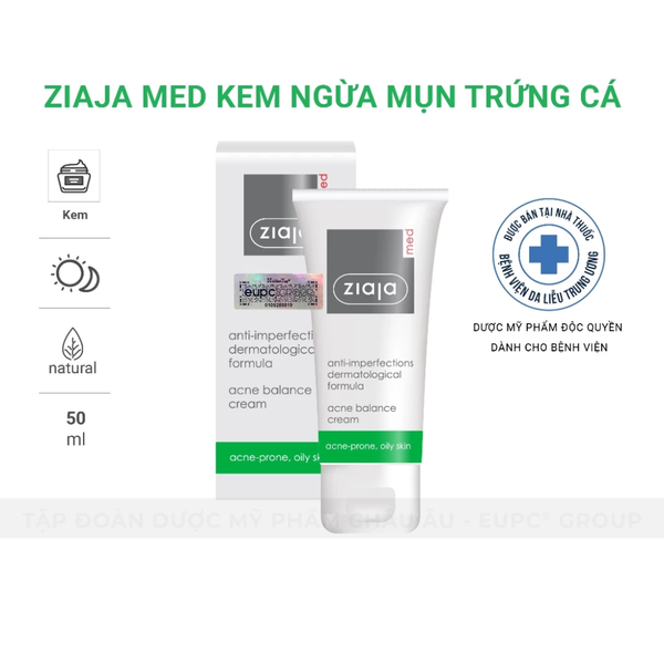 - Tên sản phẩm: Kem Dưỡng Ngừa Mụn Trứng Cá Ziaja Med Anti-imperfections Dermatological Formula Acne Balance Cream
