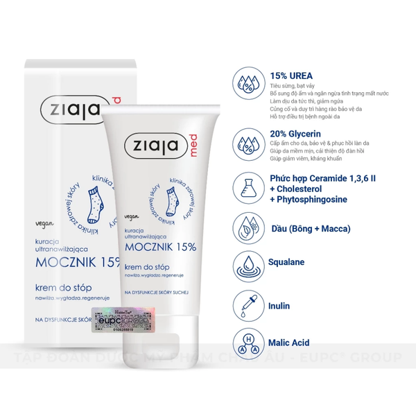 - Tên sản phẩm: Kem Dưỡng Mềm Da 15% Urê Ziaja Med Mocznik Làm Mềm, Dưỡng Ẩm, Chăm Sóc Da Khô