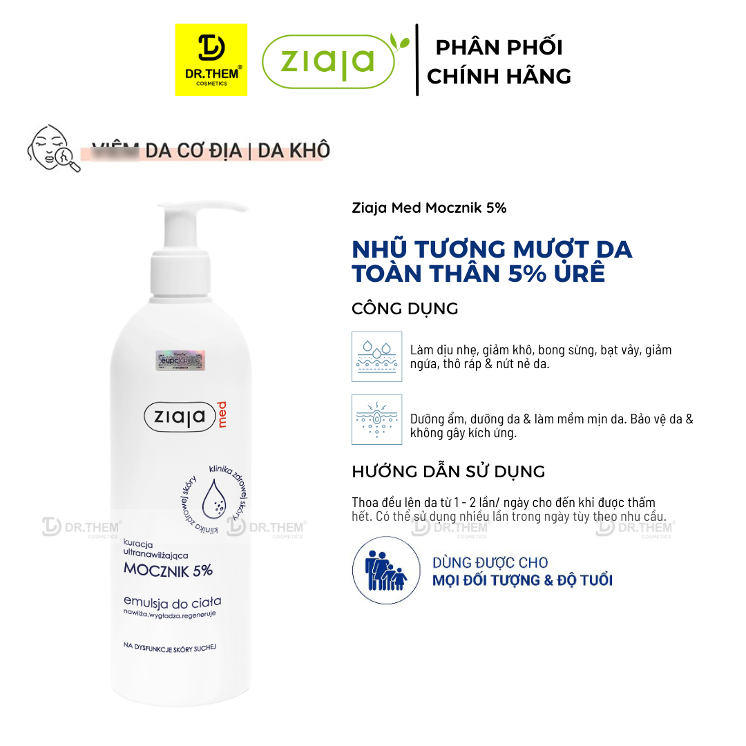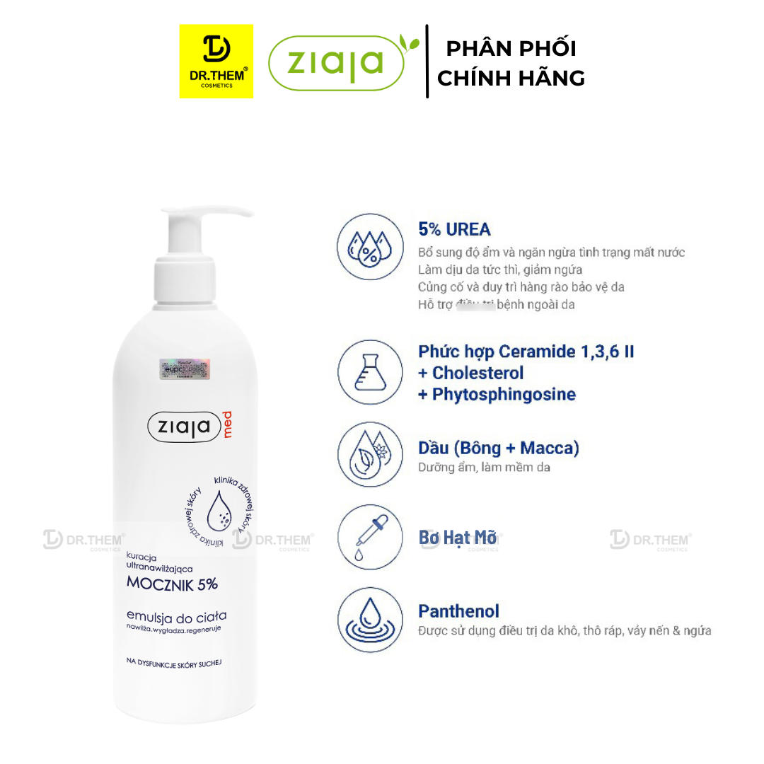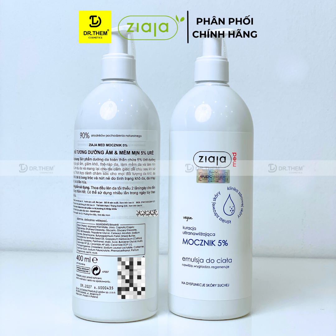 - Tên sản phẩm: Nhũ Tương Dưỡng Ẩm Toàn Thân Mềm Mượt Ziaja Med Mocznik 5% Urê Làm Mềm Và Tái Tạo Da 400ml