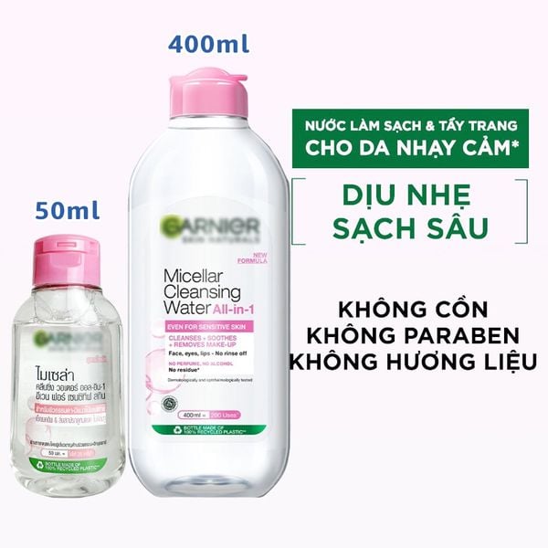 Nước Tẩy Trang Garnier Micellar Cleansing Water For Sensitive Skin Dành Cho Da Nhạy Cảm 50ml/ 400ml