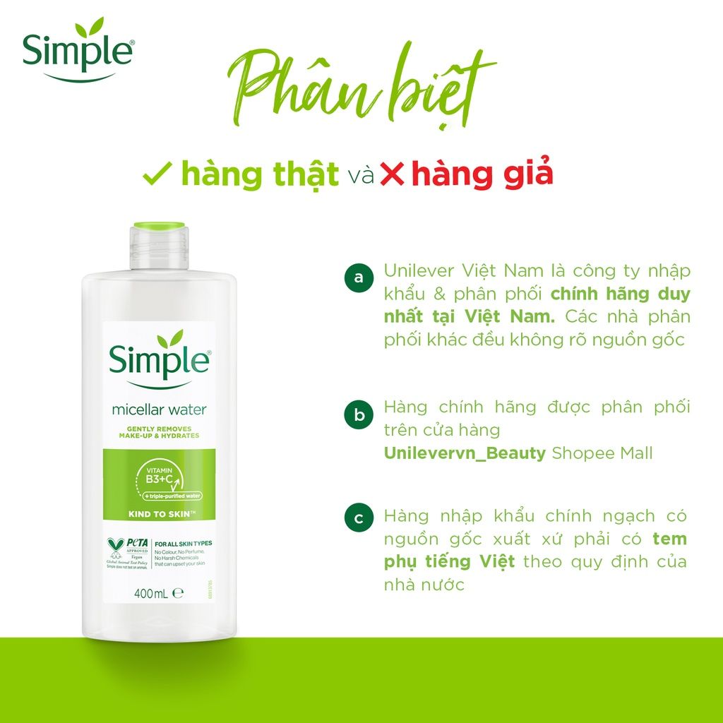 - Tên sản phẩm: Nước Tẩy Trang Simple Kind To Skin Micellar Cleansing Water Làm Sạch Trang Điểm Vượt Trội