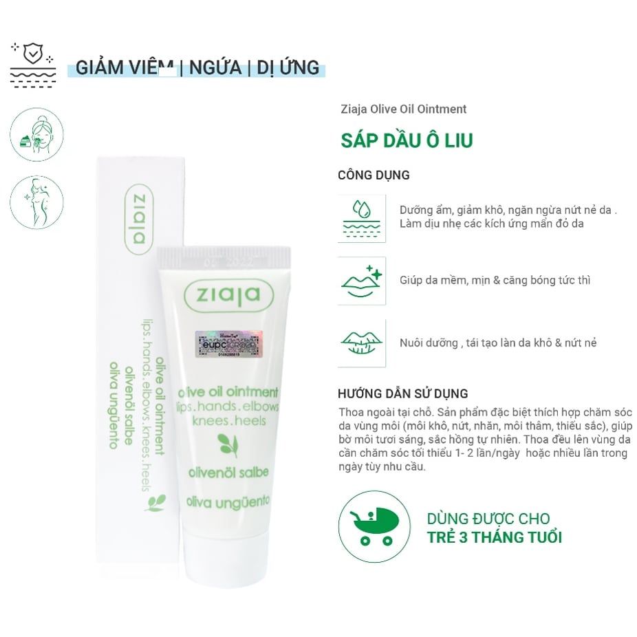 - Tên sản phẩm: Sáp Dầu Ôliu Ziaja Olive Oil Ointment Dưỡng Môi Khô, Nứt Nẻ