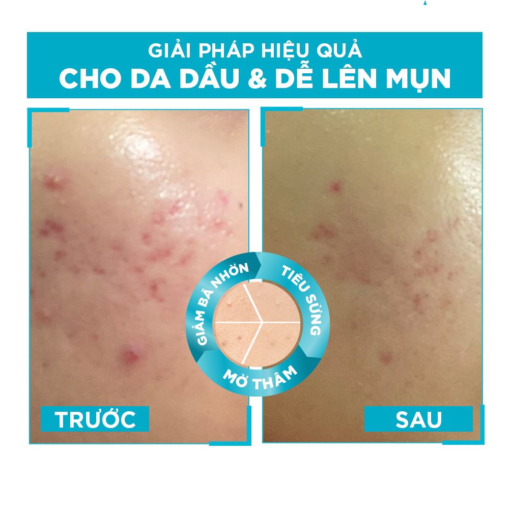+ Có công dụng giảm mụn, mờ vết thâm và vết thâm do mụn đồng thời làn da sẽ được làm dịu, sáng hơn rõ rệt. Sản phẩm hoạt động theo cơ chế 3 tác động làm giảm bã nhờn - tiêu sừng - mờ thâm mang lại làn da sáng mịn, rạng ngời.