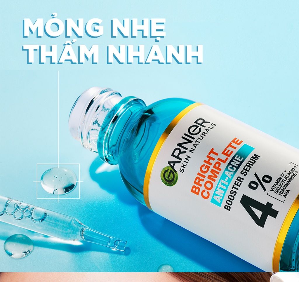 - Tên sản phẩm: Serum Garnier Bright Anti-Acne Booster Serum Giảm Mụn Mờ Thâm Cho Da Dầu, Mụn