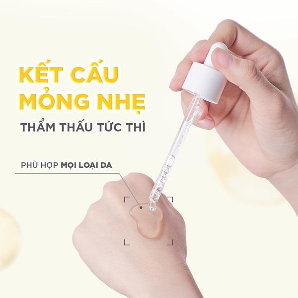+ Cho vài giọt tinh chất ra lòng bàn tay và thoa đều lên toàn bộ da mặt.