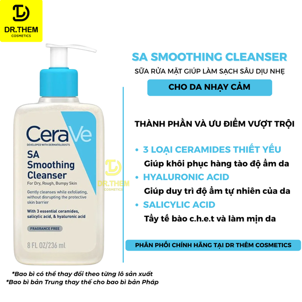 Sữa Rửa Mặt CeraVe SA Smoothing, Hydrating, Foaming Cleanser - Cho Da Dầu Mụn, Khô, Nhạy Cảm 88ml – 236ml – 473ml