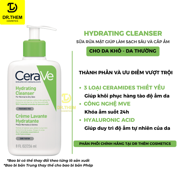 - Tên sản phẩm: Sữa Rửa Mặt CeraVe Hydrating Cleanser Cho Da Thường Đến Khô