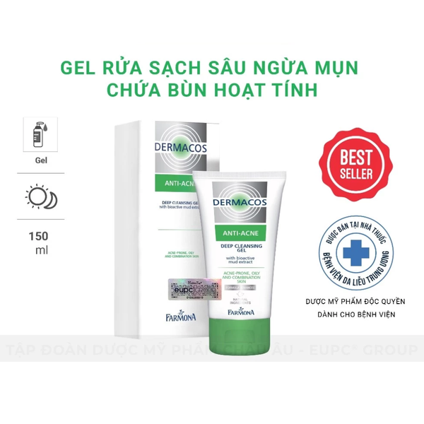 Sữa Rửa Mặt Farmona Dermacos Anti Acne Deep Cleansing Gel Làm Sạch Sâu Ngừa Mụn Cho Da Dầu 150ml