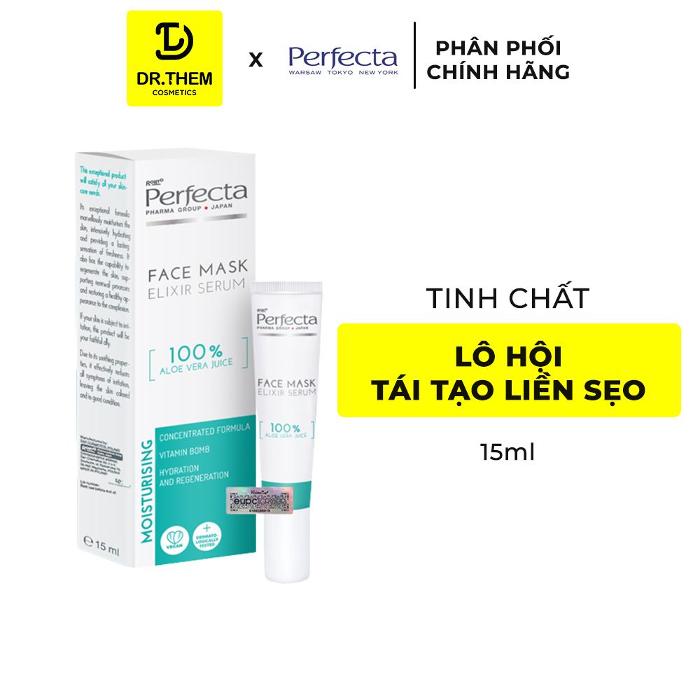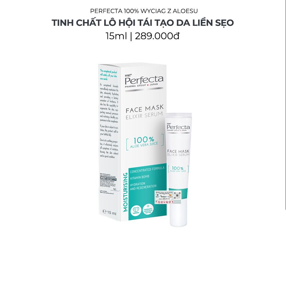 - Tên sản phẩm: Tinh Chất Lô Hội Tái Tạo Liền Sẹo Perfecta Face Mask Elixir Serum 100% Aloe Vera Juice