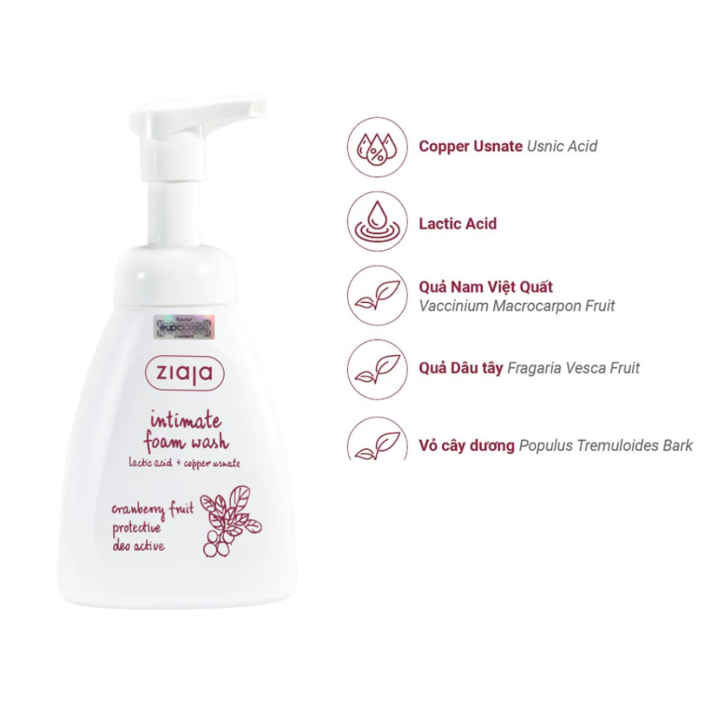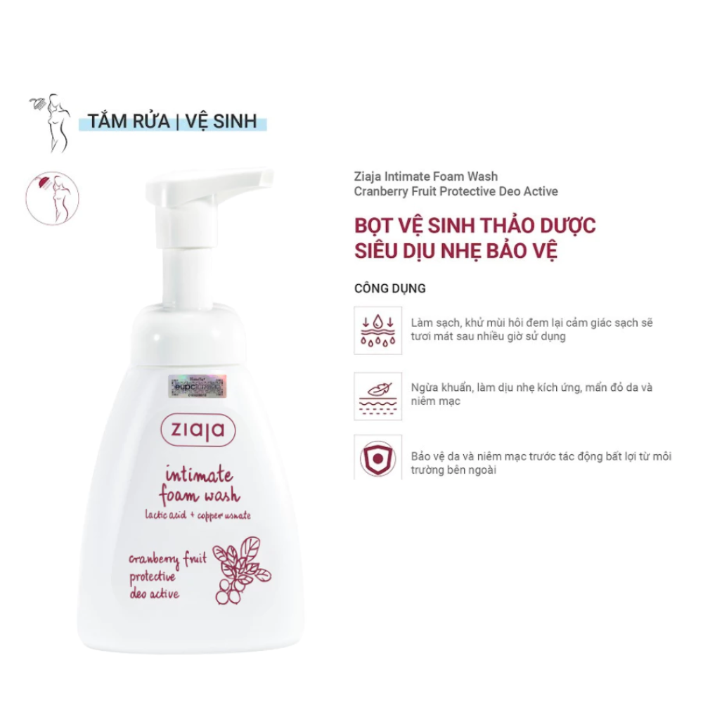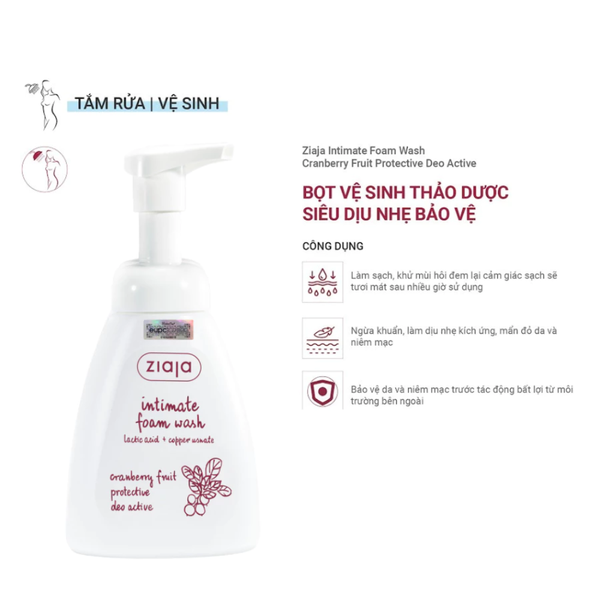 - Tên sản phẩm: Bọt Vệ Sinh Thảo Dược Ziaja Intimate Foam Wash Cranberry Fruit Protective
